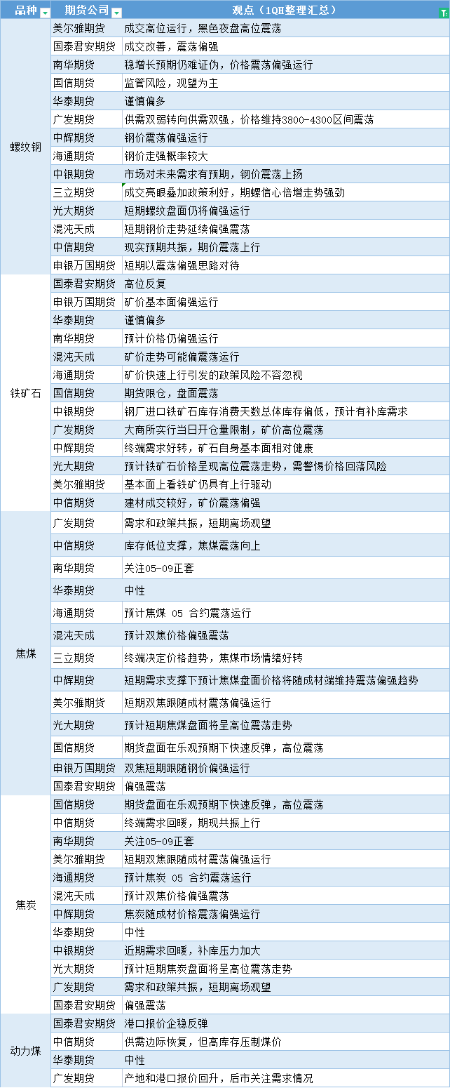 期货公司观点汇总一张图:2月22日黑色系(螺纹钢、焦煤、焦炭、铁矿石、动力煤等)