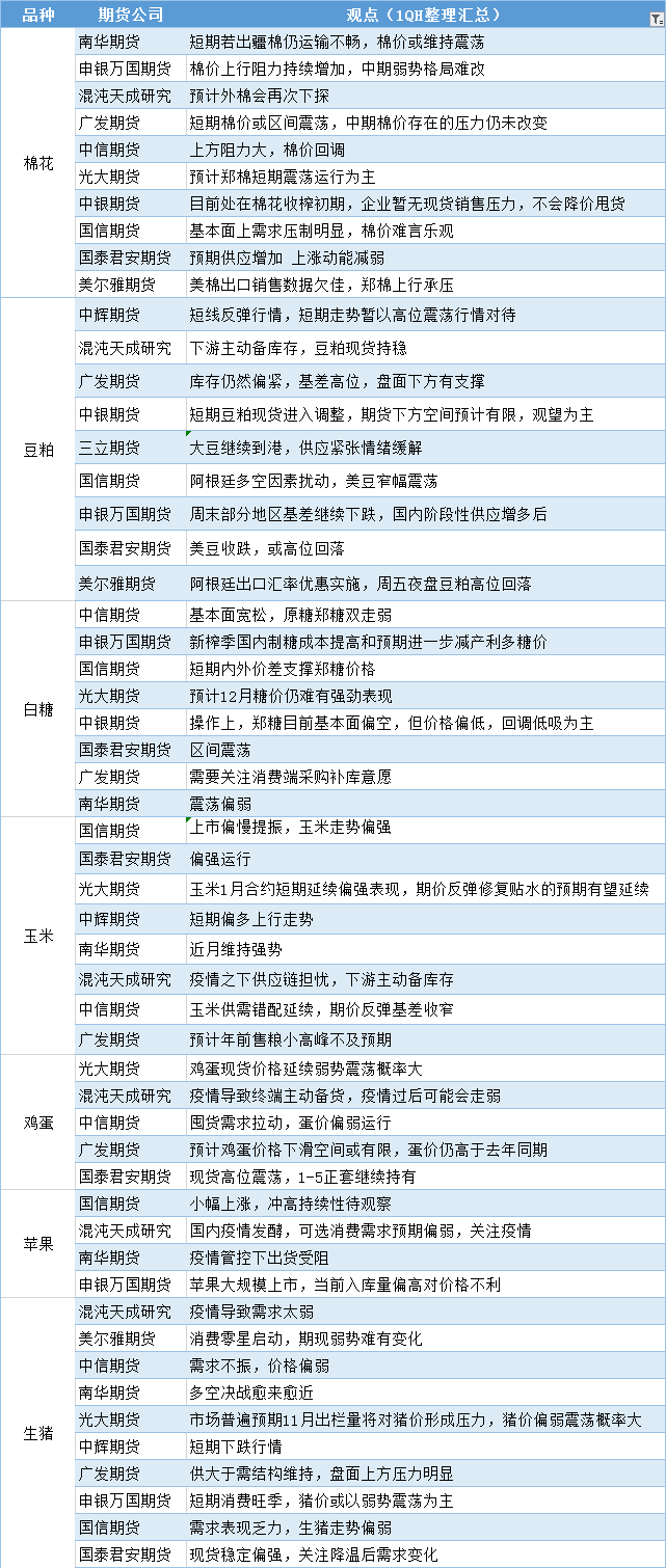 期货公司观点汇总一张图:11月28日农产品(棉花、豆粕、白糖、玉米、鸡蛋、生猪等)日期:2022-11-28 11:37