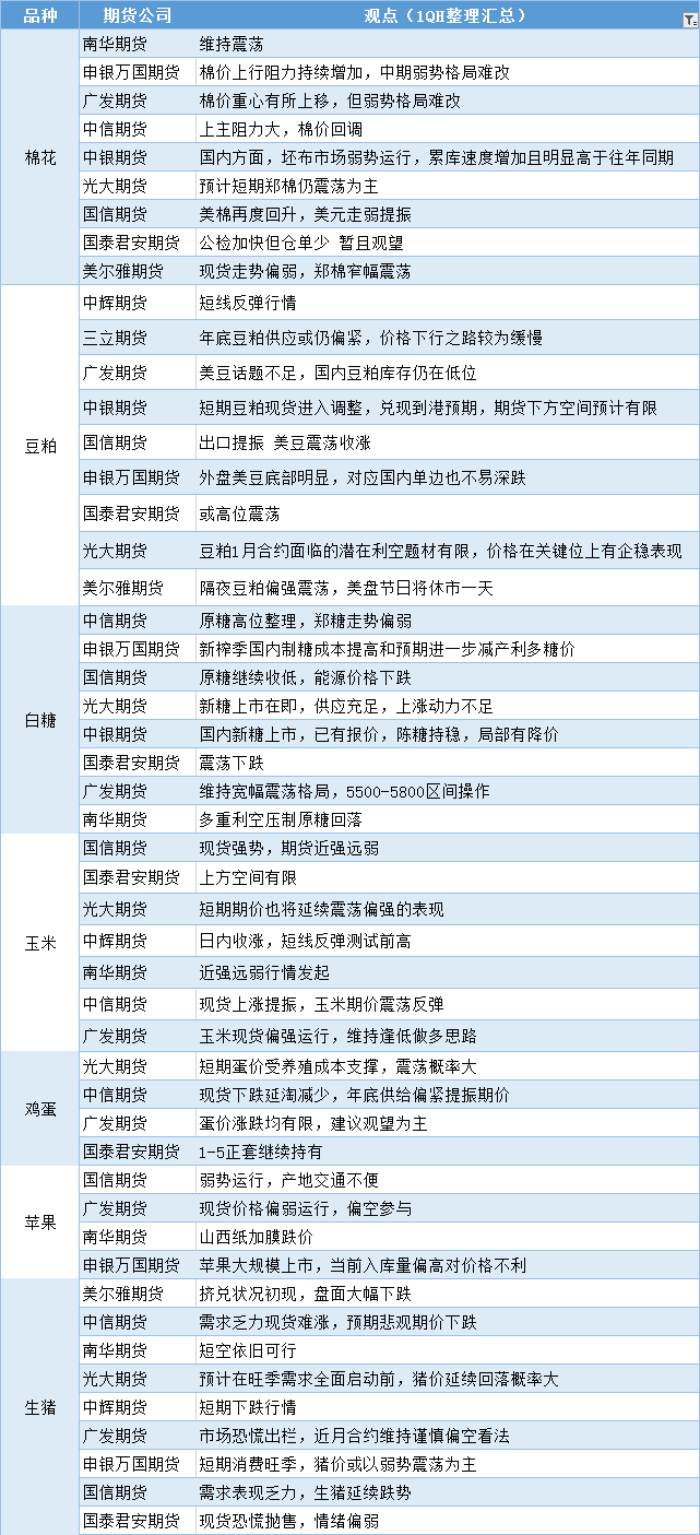 期货公司观点汇总一张图:11月24日农产品(棉花、豆粕、白糖、玉米、鸡蛋、生猪等)
