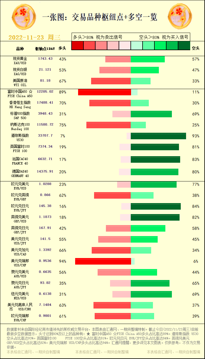 一张图:交易品种枢纽点+多空占比一览(2022/11/23周三)