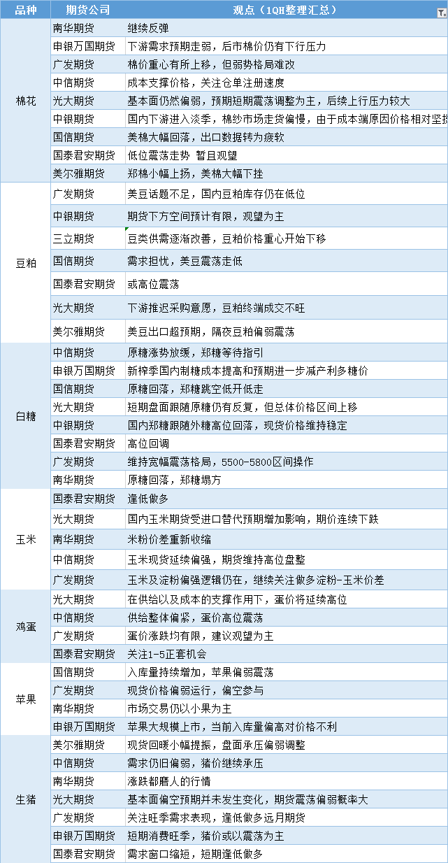 期货公司观点汇总一张图:11月18日农产品(棉花、豆粕、白糖、玉米、鸡蛋、生猪等)