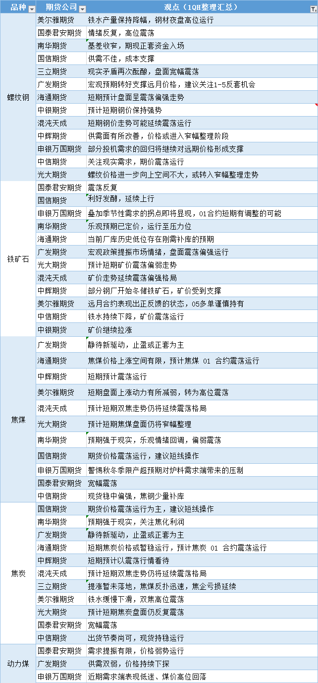 期货公司观点汇总一张图:11月18日黑色系(螺纹钢、焦煤、焦炭、铁矿石、动力煤等)