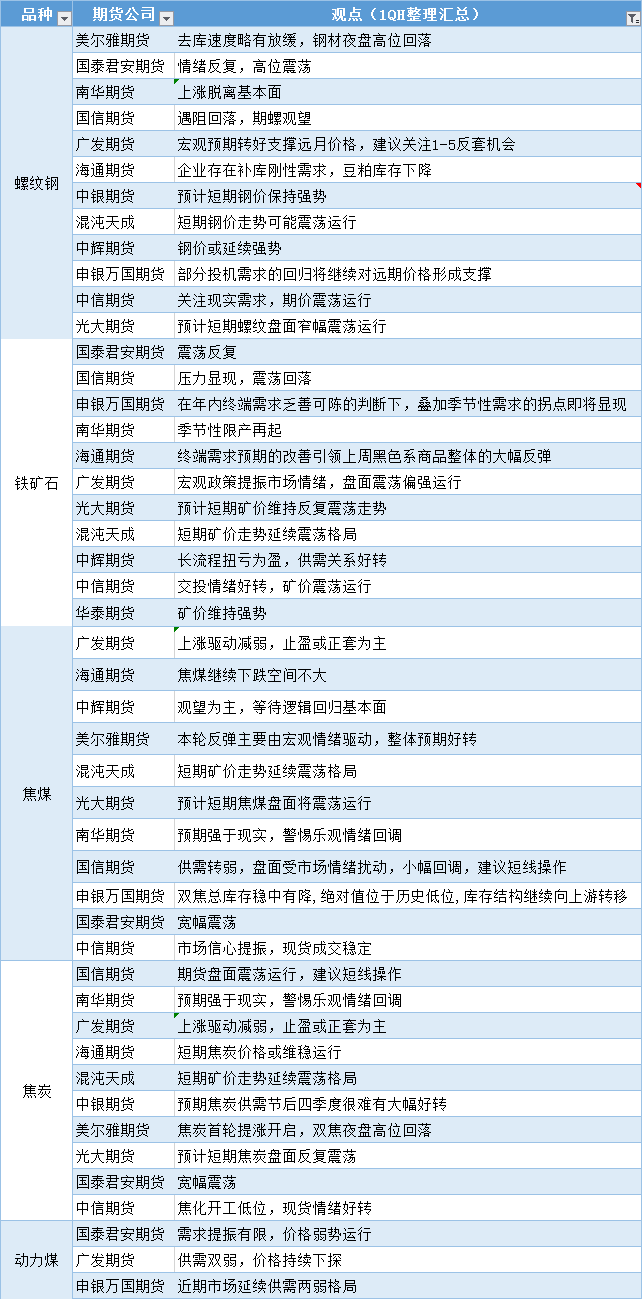 期货公司观点汇总一张图:11月17日黑色系(螺纹钢、焦煤、焦炭、铁矿石、动力煤等)