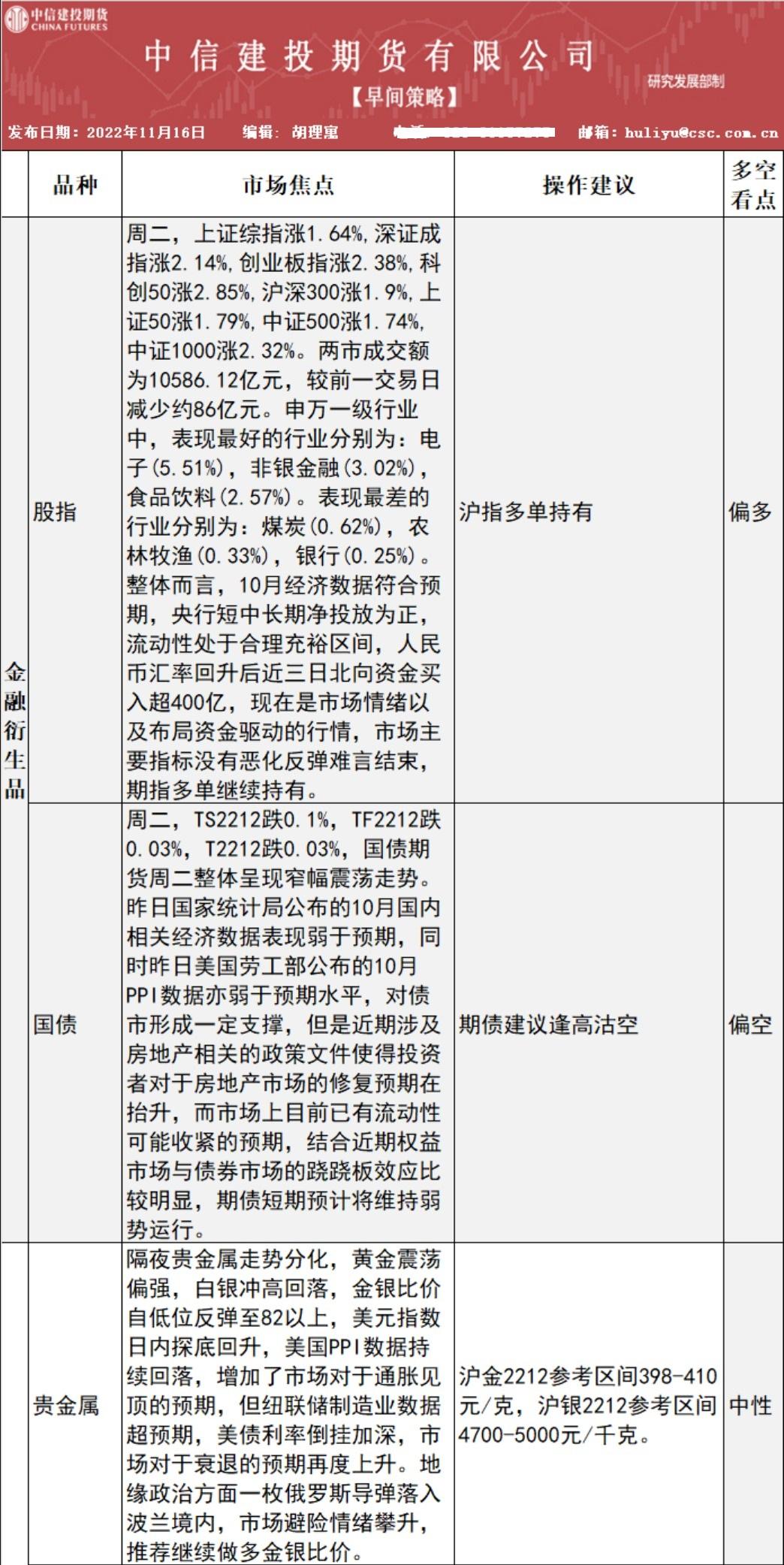 三立期货:股指短期承压,金银较为抗跌,原油震荡运行(20221116收评)