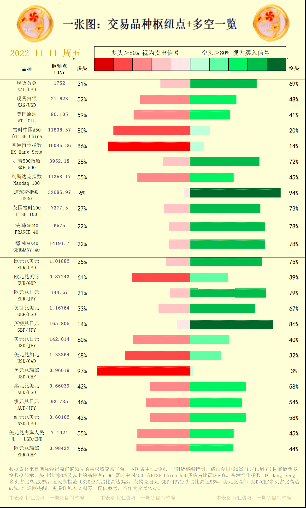 一张图:交易品种枢纽点+多空占比一览(2022/11/11周五)