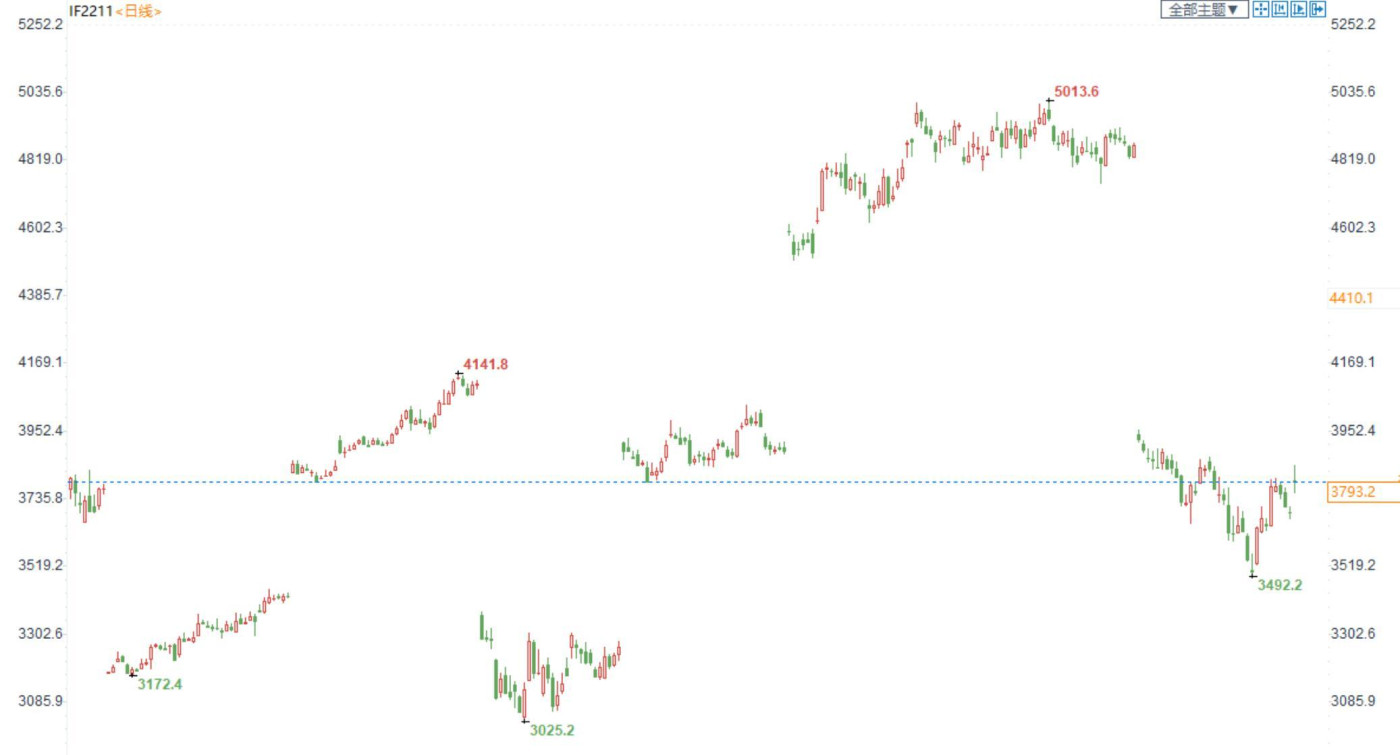 股指期货:市场缩量回调,延续筑底震荡 【今日涨跌】四大期指全线收跌。IH2211收盘价为2438.2,收跌0.92%;IF2211收盘价为3712.2,收跌1.18%;IC2211收盘价为6123.2...日期:2022-11-11 18:24