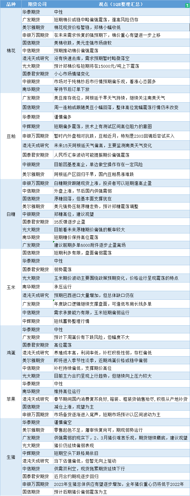 汇通财经APP讯——期货公司观点汇总一张图:2月6日农产品(棉花、豆粕、白糖、玉米、鸡蛋、生猪等)日期:2023-02-06 00:00
