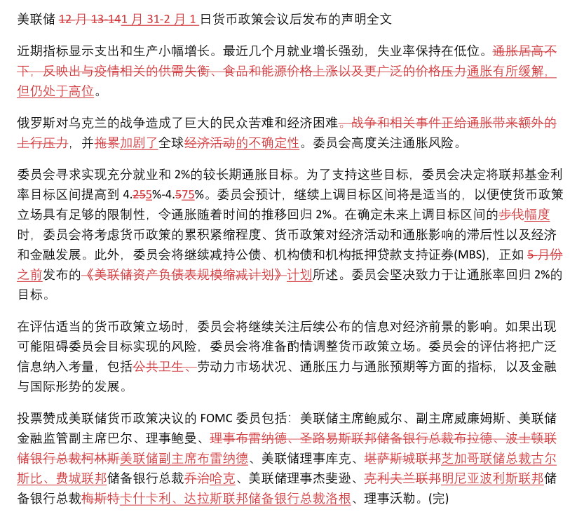 汇通财经APP讯——周三(2月1日)纽约时段盘中,北京时间周四凌晨3点,美联储公布最新的2月利率决议,美联储如期升息25基点,至4.50-4.75%,符合预期。从本次美联储决议声明上看,美联储措辞基本...日期:2023-02-02 00:00