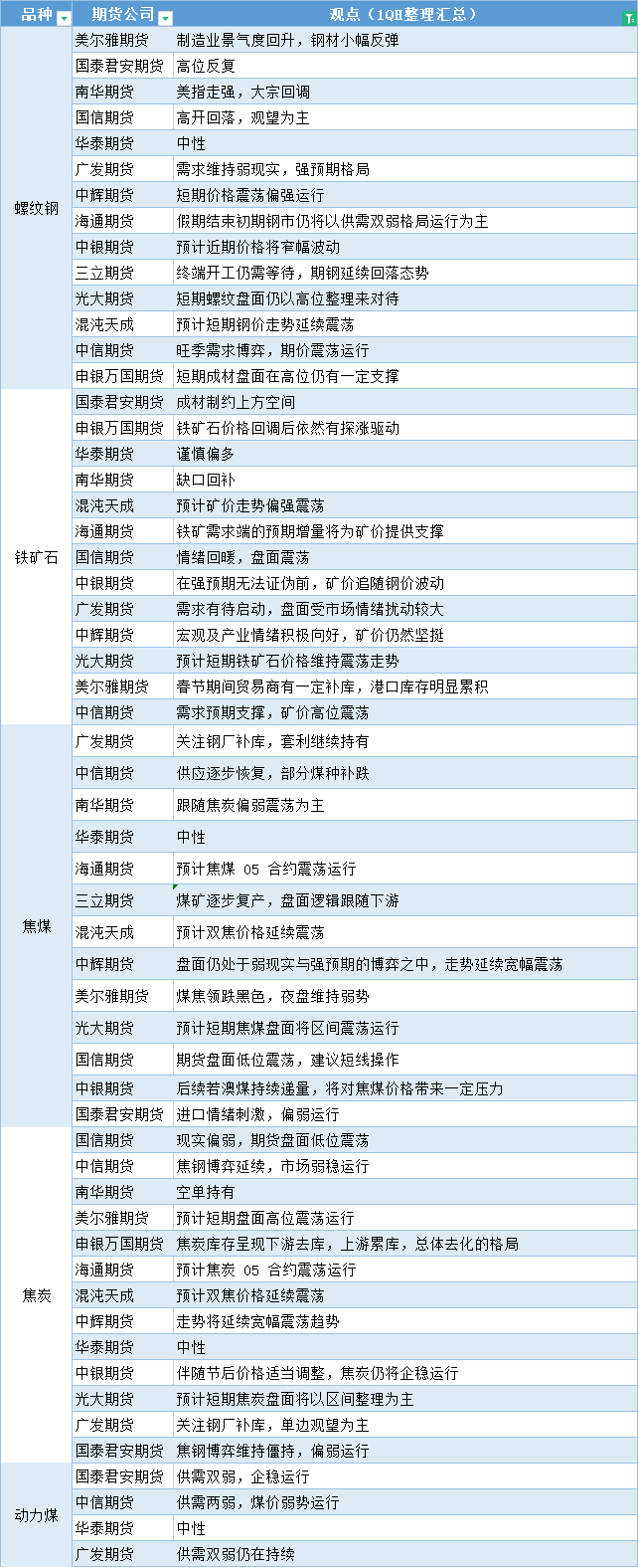 期货公司观点汇总一张图:2月1日黑色系(螺纹钢、焦煤、焦炭、铁矿石、动力煤等)