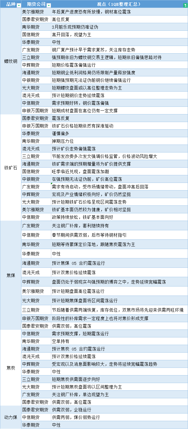 期货公司观点汇总一张图:1月31日黑色系(螺纹钢、焦煤、焦炭、铁矿石、动力煤等)