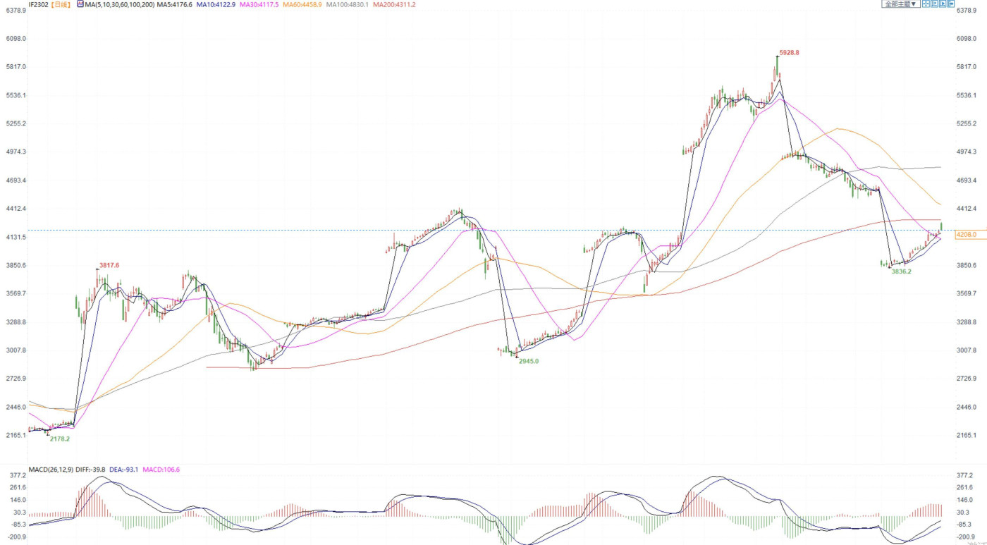 汇通财经APP讯——股指期货:市场开门红,两市成交额再破万亿 【今日涨跌】四大期指涨跌互现。IH2302收盘价为2840.0,收跌0.03%;IF2301收盘价为4208,收涨0.32%;IC2301...日期:2023-01-30 00:00