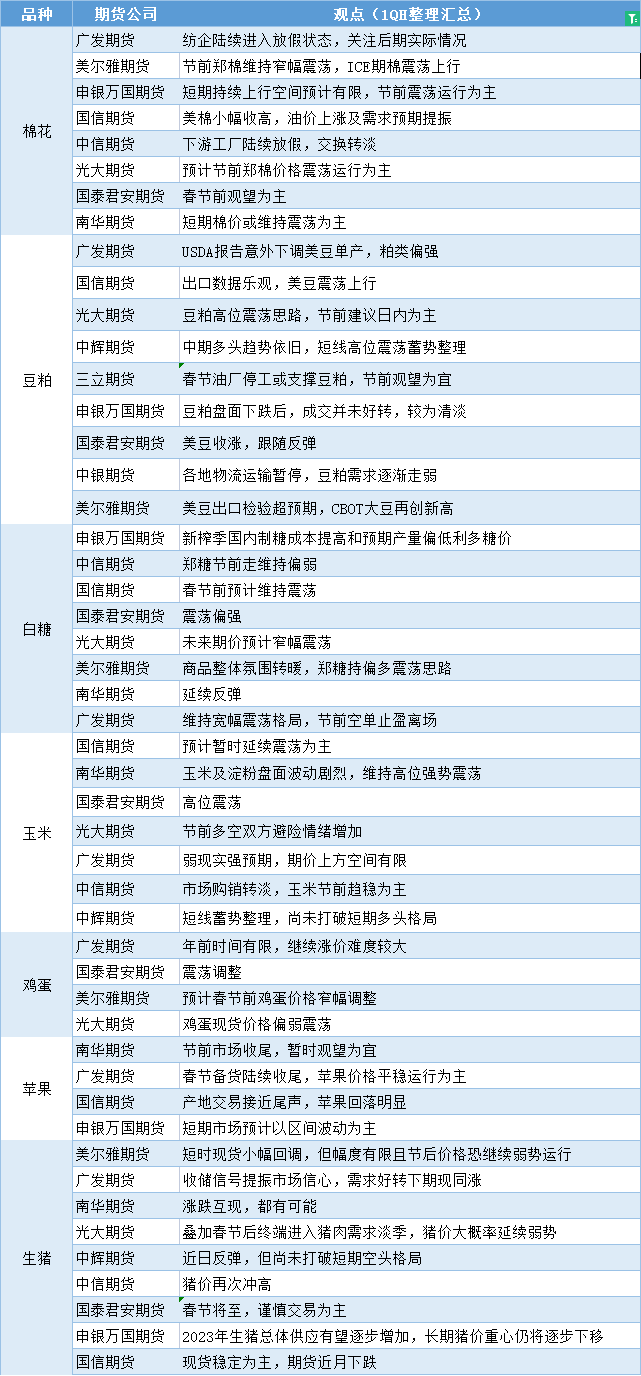 汇通财经APP讯——期货公司观点汇总一张图:1月18日农产品(棉花、豆粕、白糖、玉米、鸡蛋、生猪等)日期:2023-01-18 00:00