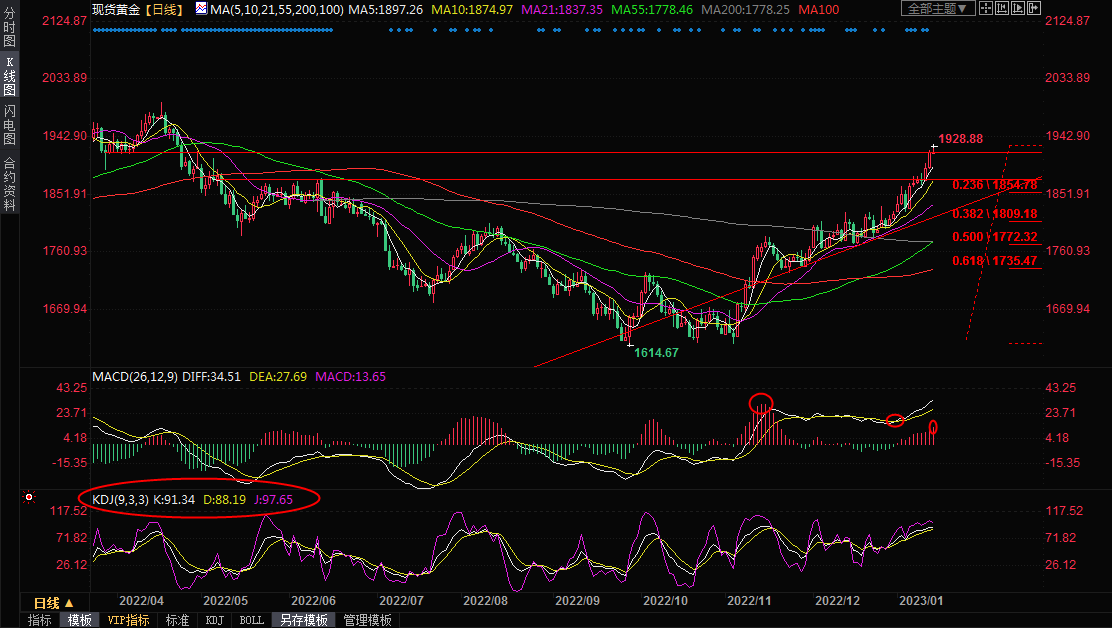 一张图:黄金原油外汇股指"枢纽点+多空占比"一览(2023/01/16周一)