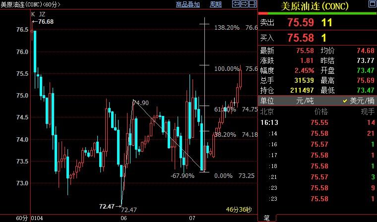 NYMEX原油上看76.61美元