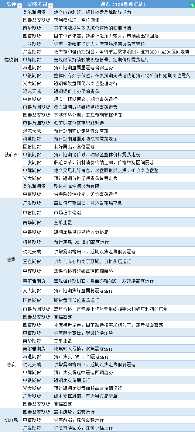 期货公司观点汇总一张图:1月6日黑色系(螺纹钢、焦煤、焦炭、铁矿石、动力煤等)