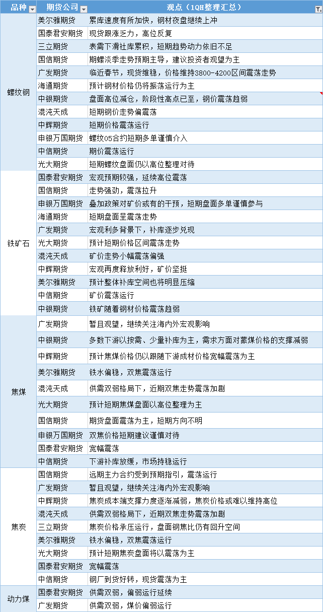 期货公司观点汇总一张图:12月30日黑色系(螺纹钢、焦煤、焦炭、铁矿石、动力煤等)