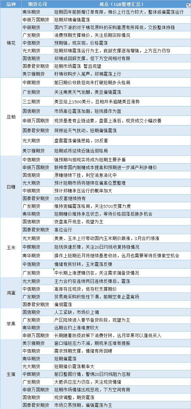 汇通财经APP讯——期货公司观点汇总一张图:12月29日农产品(棉花、豆粕、白糖、玉米、鸡蛋、生猪等)日期:2022-12-29 00:00