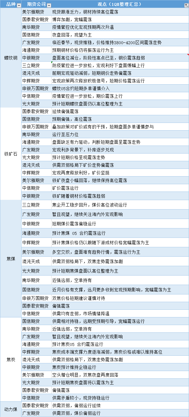 汇通财经APP讯——期货公司观点汇总一张图:12月28日黑色系(螺纹钢、焦煤、焦炭、铁矿石、动力煤等)日期:2022-12-28 00:00