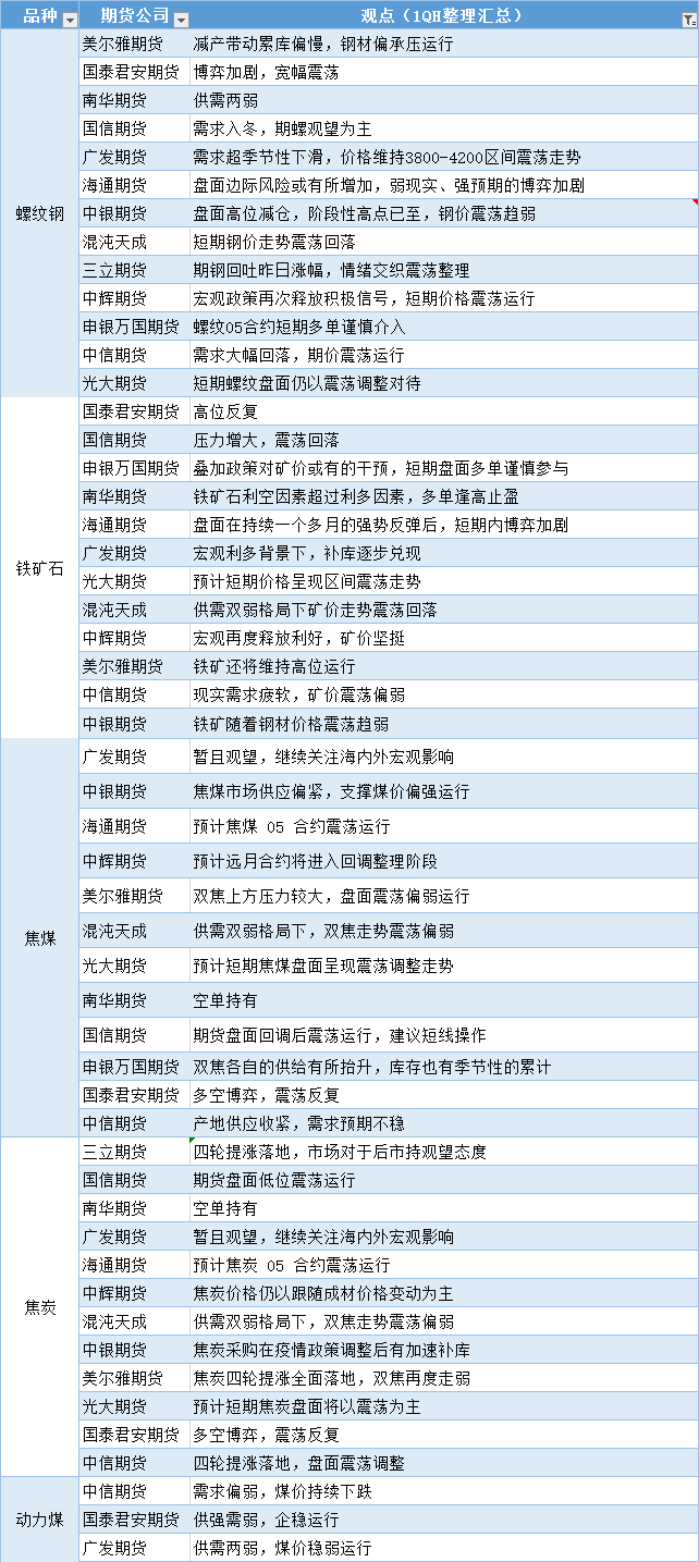 期货公司观点汇总一张图:12月23日黑色系(螺纹钢、焦煤、焦炭、铁矿石、动力煤等)
