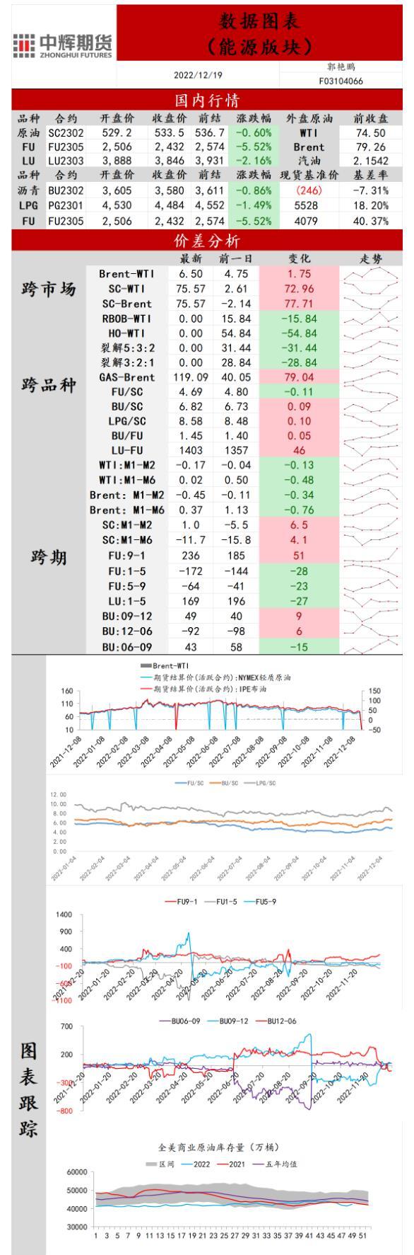 中辉期货原油日报20221219:原油震荡运行,市场暂缺热点驱动
