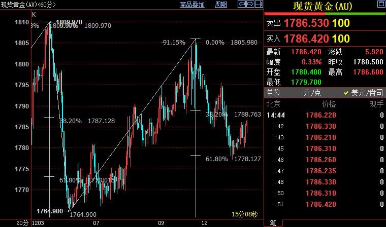 汇通财经APP讯——周二(12月13日)亚洲时段,现货黄金震荡微涨,目前交投于1784.92美元/盎司附近,市场预计美国11月CPI增速将会放缓,给金价提供支撑,但在数据出炉前,市场观望情绪较浓。美国...日期:2022-12-13 00:00