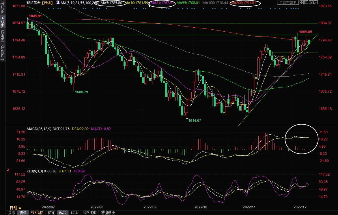 汇通财经APP讯——周五美市尾盘,现货黄金收报1797.03美元/盎司,上涨8.17美元或0.46%,日内最高触及1806.03美元/盎司,最低触及1788.35美元/盎司。美国劳工部上周五公布,由于...日期:2022-12-12 00:00