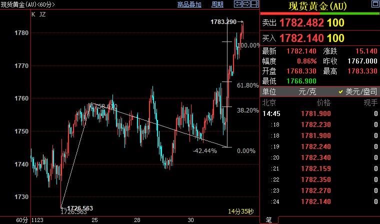 汇通财经APP讯——周四(12月1日),国际金价连续第三个交易日走强,创11月16日以来新高至1783.02美元/盎司,因美联储主席鲍威尔的讲话强化市场对美联储加息幅度放慢预期。金价后市上看1790美...日期:2022-12-01 00:00