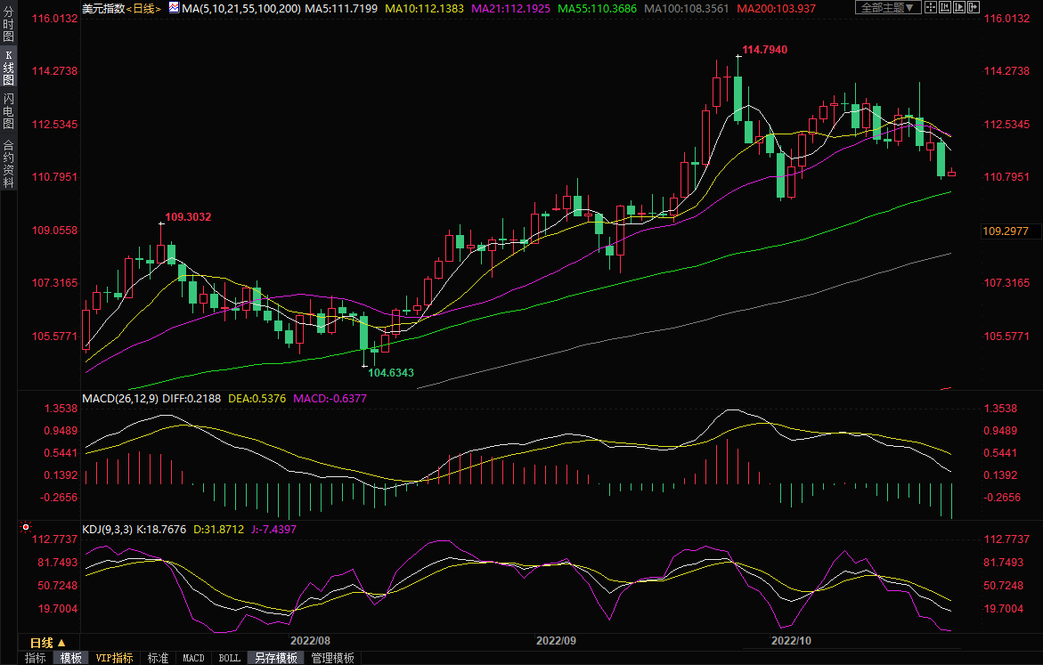 周二而美元跌至三周低点,收报110.88,跌幅约0.99%,为近一周最大单日跌幅,因为美国经济数据转弱,对美国未来加息步伐的预期降温。