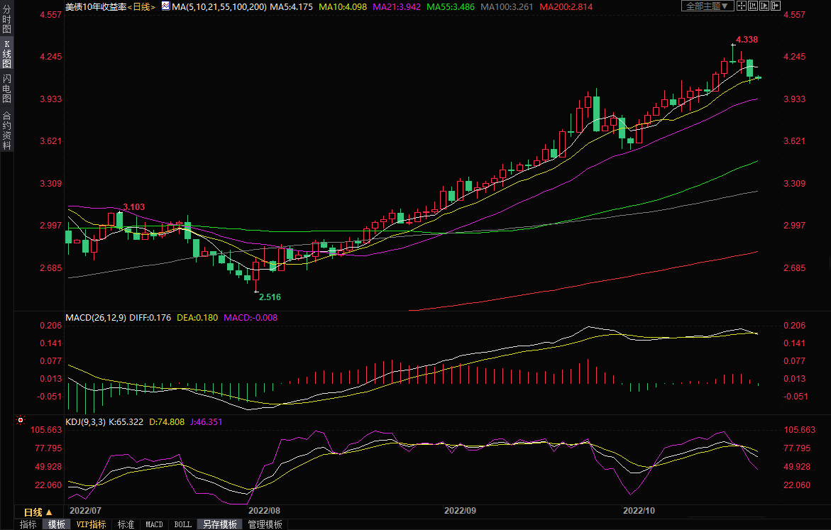 周二10年期国债收益率骤降14.5个基点,是三周以来的最大单日跌幅,盘中最低触及4.052%,为近四个交易日新低,收报4.110,上周曾触及4.338%的14年高点。