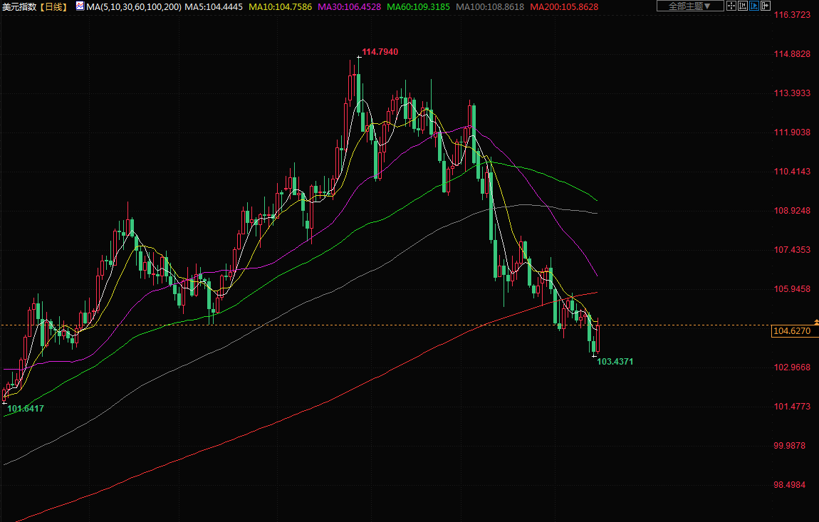汇通财经APP讯——北京时间周五(12月16日),美元交投于104.60附近;美元周四上涨,投资者担忧美联储可能在明年继续加息导致经济衰退的风险;欧洲央行和英国央行周四都加息50个基点,英镑兑美元大幅下跌,因为投资者认为英国央行已经接近加息的终点;金价下跌,触及约一周以来最低;油价下滑约2%,因为美元走强和全球主要央行进一步加息,令交易商担心燃料需求前景。
