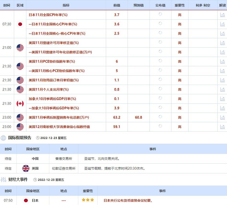 12月23日,日本将公布10月利率决议会议纪要,投资者可以从中了解日本央行对于日本经济以及货币政策的更多细节。