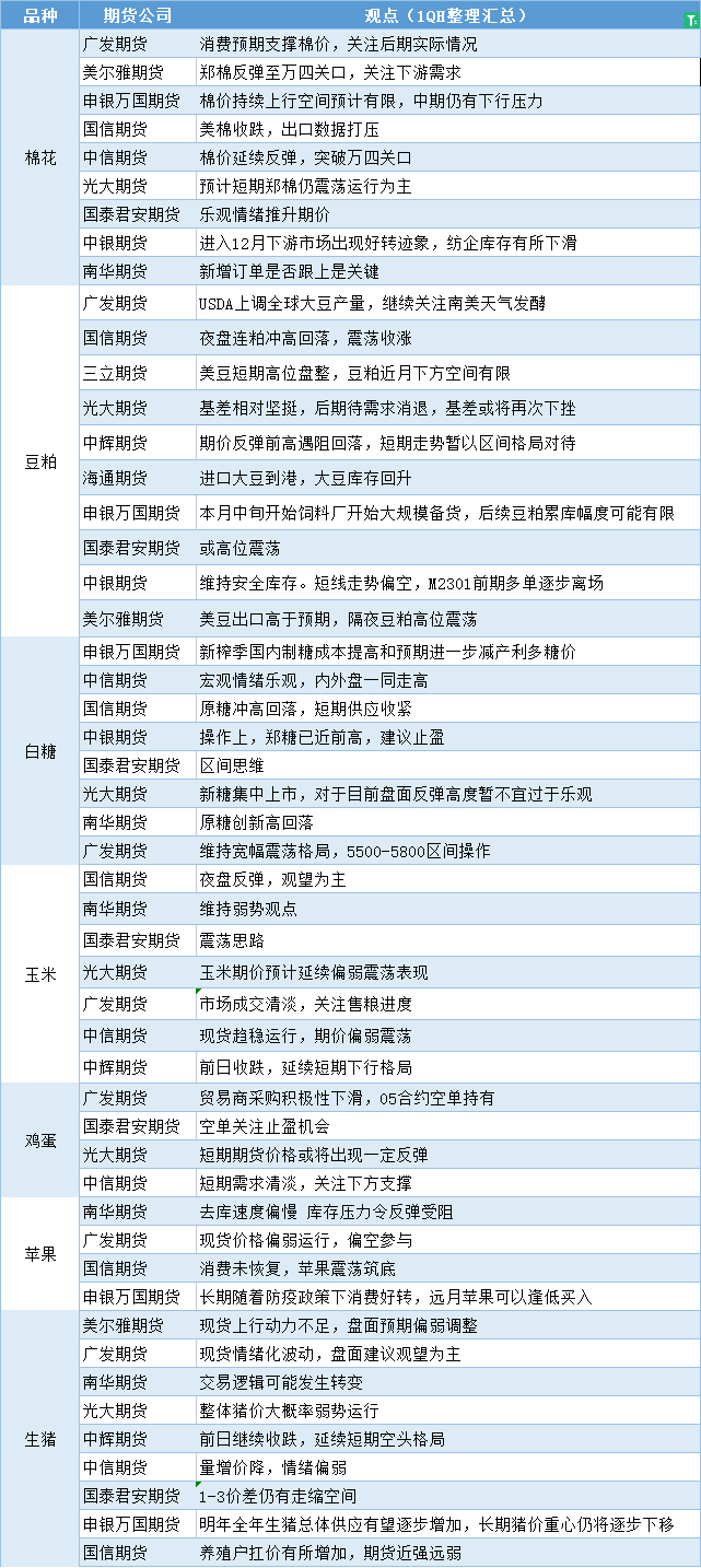 期货公司观点汇总一张图:12月16日农产品(棉花、豆粕、白糖、玉米、鸡蛋、生猪等)