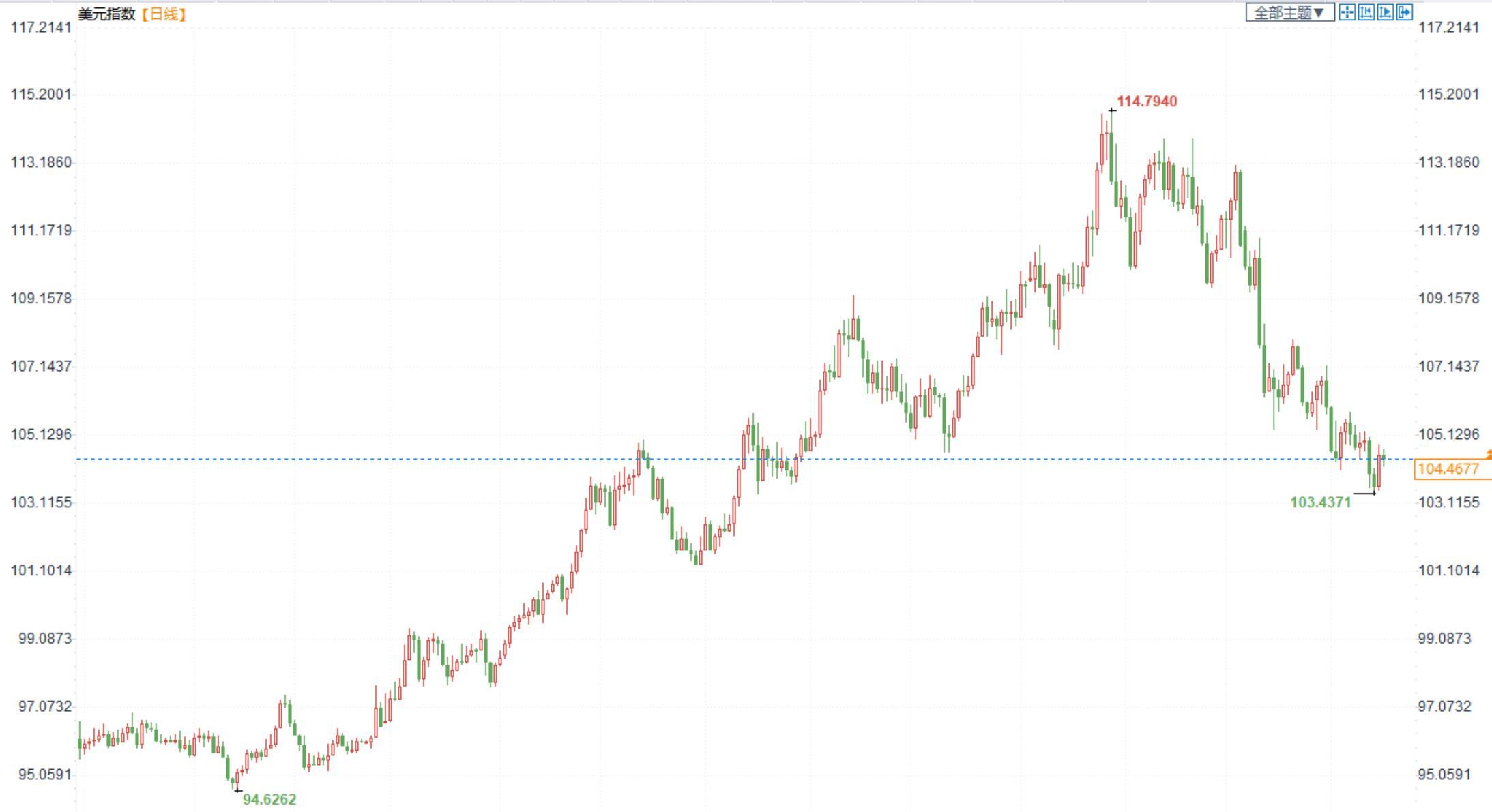 美元指数震荡回落,美国通胀放缓给美元压力,美联储放缓升息步伐