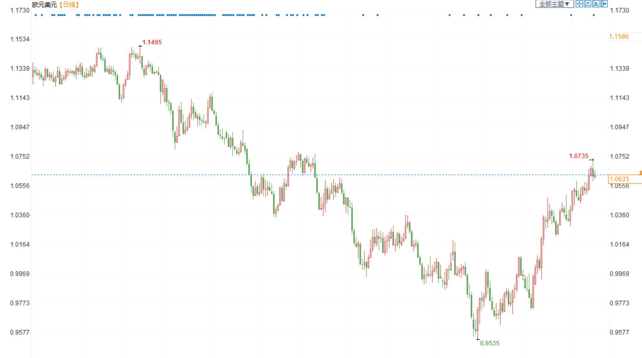 欧洲央行加大紧缩力度支持欧元。欧洲央行15日宣布将欧元区三大关键利率均上调50个基点,承诺继续大幅加息,同时公布量化紧缩计划。今年7月至今,欧洲央行已进行连续四次大幅加息以遏制通胀,共加息250个基点。