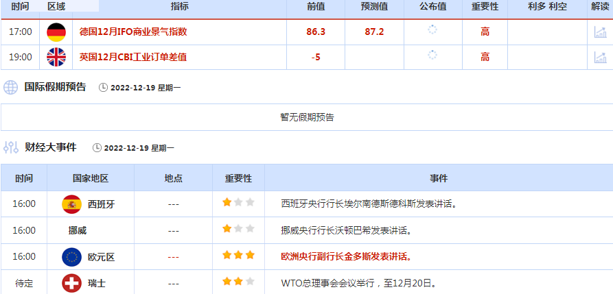汇通财经APP讯——北京时间周一(12月19日),本周市场迎来日本央行利率决议,日本央行行长黑田东彦将召开货币政策新闻发布会,预计日本央行行长黑田东彦料将重申必须保持货币刺激政策,以确保持续通胀。此外,澳洲联储公布货币政策会议纪要,WTO总理事会会议将举行,至12月20日。