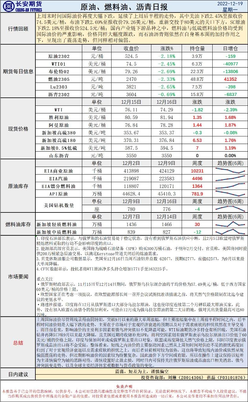 12月19日,长安期货发布原油早评,认为原油将震荡,短差为主,谨慎偏空。