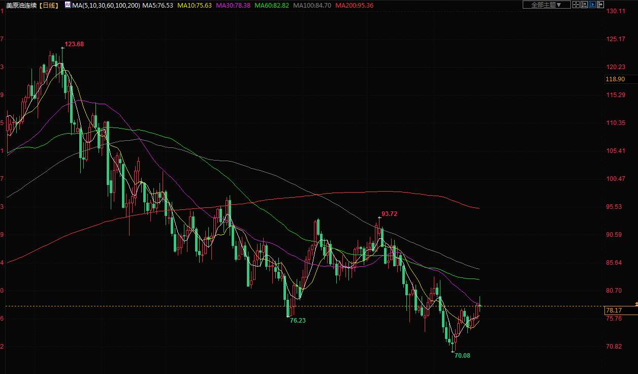 商品收盘情况:布伦特原油期货结算价报每桶80.98美元,下跌1.5%。美国原油期货结算价为77.49美元,下跌1%。美国期金收跌1.7%,结算价报1795.30美元。