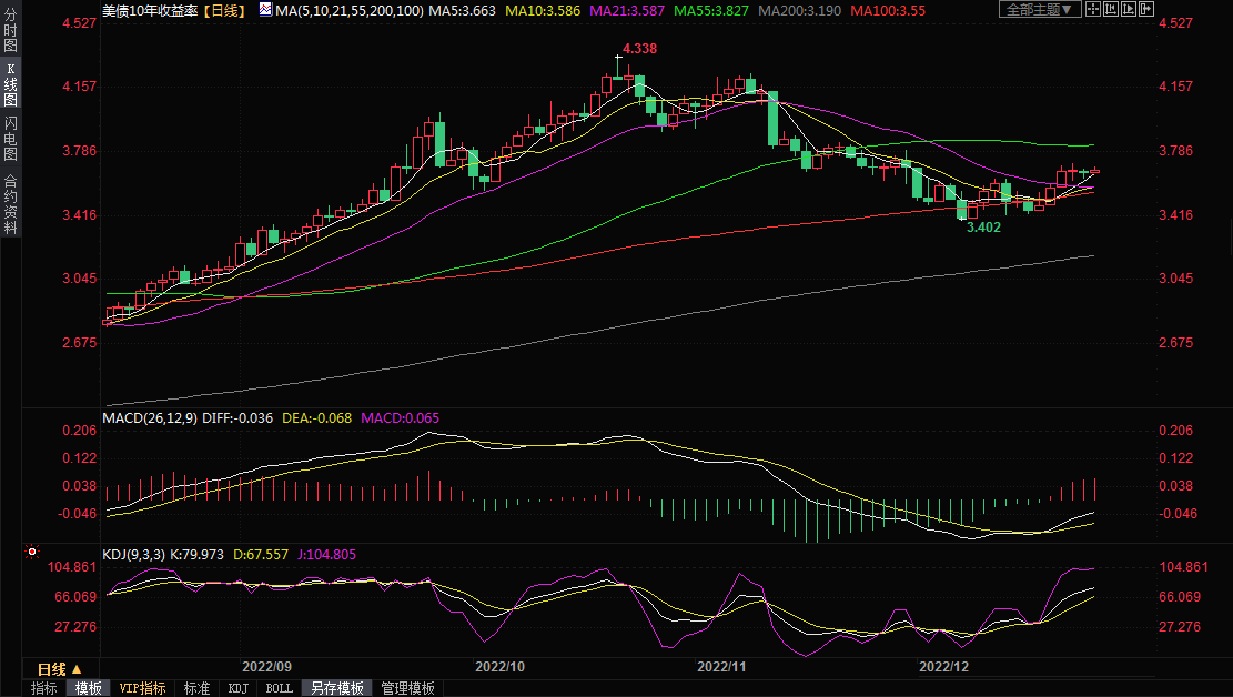 10年期美债收益率周四下跌两个基点,至3.669%。两年期美债收益率周四上涨5个基点,至4.263%。