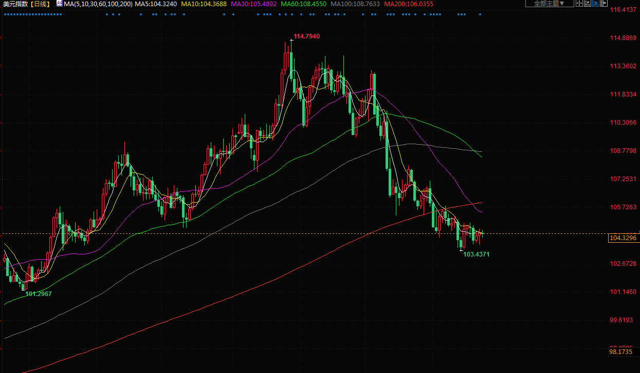 不过,美元指数自9月创下20年高位以来已下跌超过8%,美国通胀大幅放缓引发了人们对美联储可能很快结束其紧缩周期的希望。美元指数盘尾变动不大,报104.35。