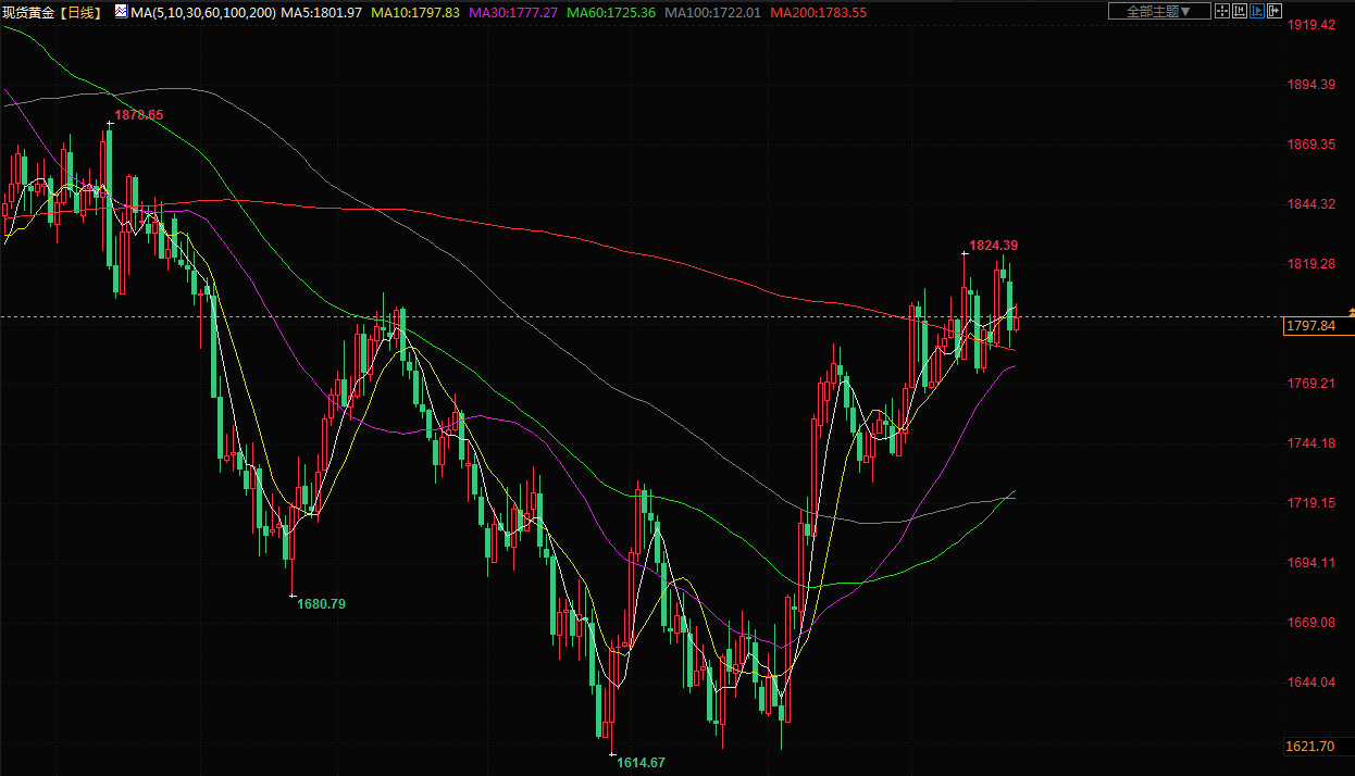 上周四黄金价格下跌超过1%,此前美国GDP数据凸显该国经济的反弹速度比之前估计的要快,这可能会使美联储在对抗通胀的道路上走得更急。虽然黄金被视为通胀的对冲工具,但加息对非孳息黄金的影响很大。 金价正处于连续第二年下跌的轨道上,下跌近2%。