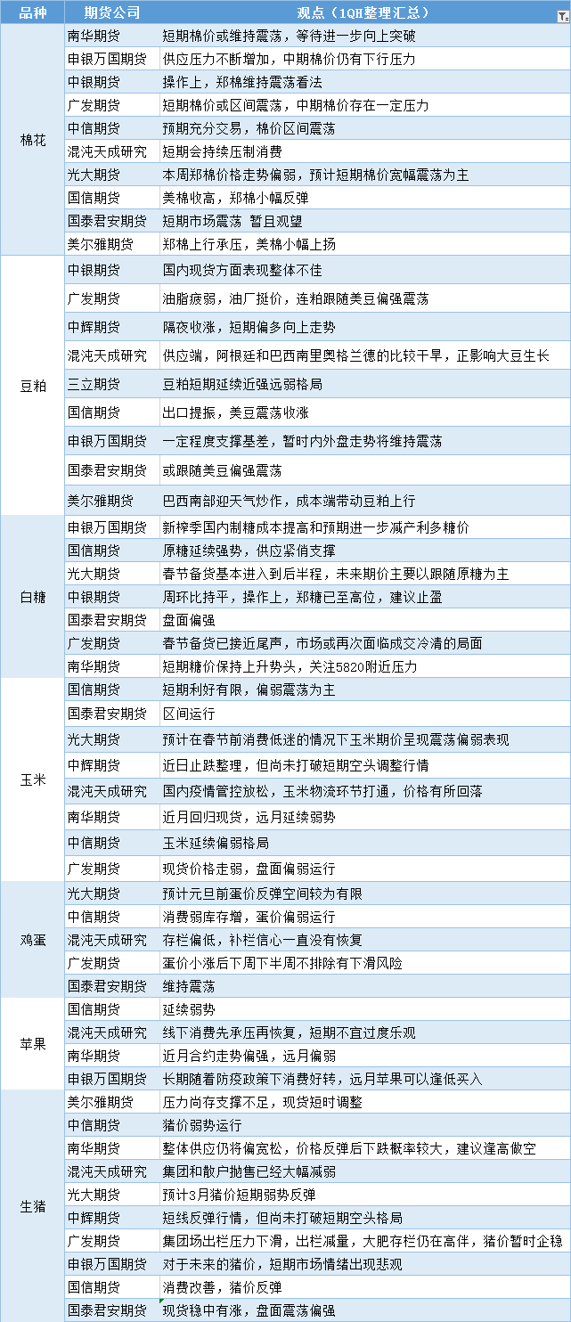期货公司观点汇总一张图:12月26日农产品(棉花、豆粕、白糖、玉米、鸡蛋、生猪等)