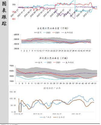 供应端:据美国能源信息署最新数据显示,截止2022年12月16日当周,包括战略储备在内的美国原油库存总量79685.8万桶,比前一周下降954.2万桶;美国商业原油库存41823.4万桶,比前一周下降589.5万桶;战略原油库存量37862.4万桶,比上一周下降364.7万桶;美国汽油库存总量22611.3万桶,比前一周上升253万桶。商业原油库存比去年同期低1.26%,比过去五年同期低7.19%;汽油库存比去年同期低0.89%,比过去五年同期低约1.92%;馏分油库存比去年同期低3.40%,比过去五年同期低7.58%。