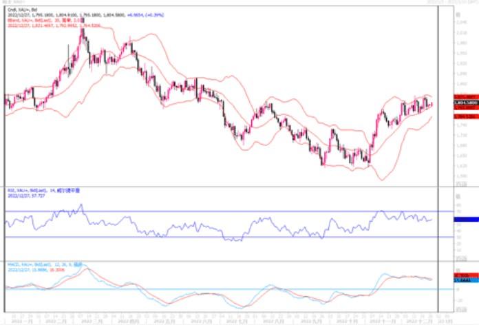 技术层面上,从周线图观察,金价稳稳地企立短期均线上方,技术指标继续朝超买方向延展,显示黄金多头的中期走向维持不变。日线图上,目前围绕1800美元关口窄幅上下盘整,各类技术指标处在均衡水平指向不太明朗。近期下方留意1775美元的支撑,若跌穿,黄金恐要进一步的作回撤整理的走势。上方如果突破1810将分别回去尝试1825乃至1850水位。