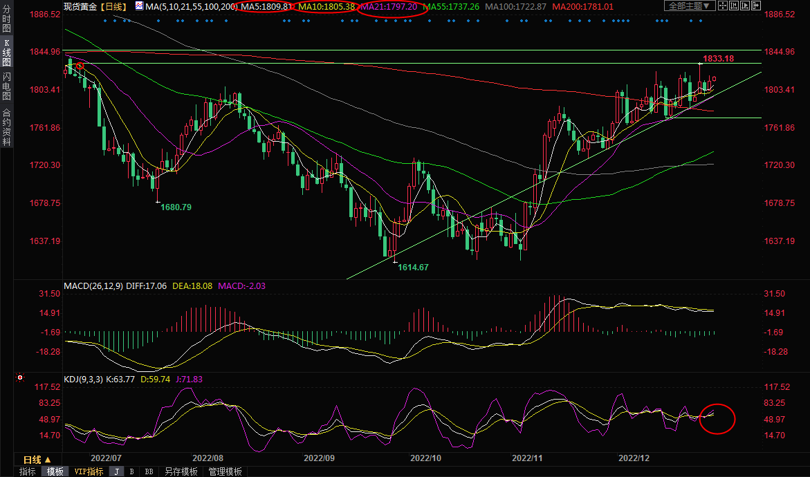 汇通财经APP讯——周五(12月30日)亚洲时段,现货黄金震荡位置,目前交投于1818美元/盎司附近,隔夜美元和美债收益率的回落给金价提供支撑,一方面市场仍憧憬美联储将放缓加息步伐,另一方面,俄乌地缘局势依然紧张,黄金后市仍略微偏向震荡上行。不过,K线显示上涨动能还不是很强,仍需提防冲高回落的可能性。