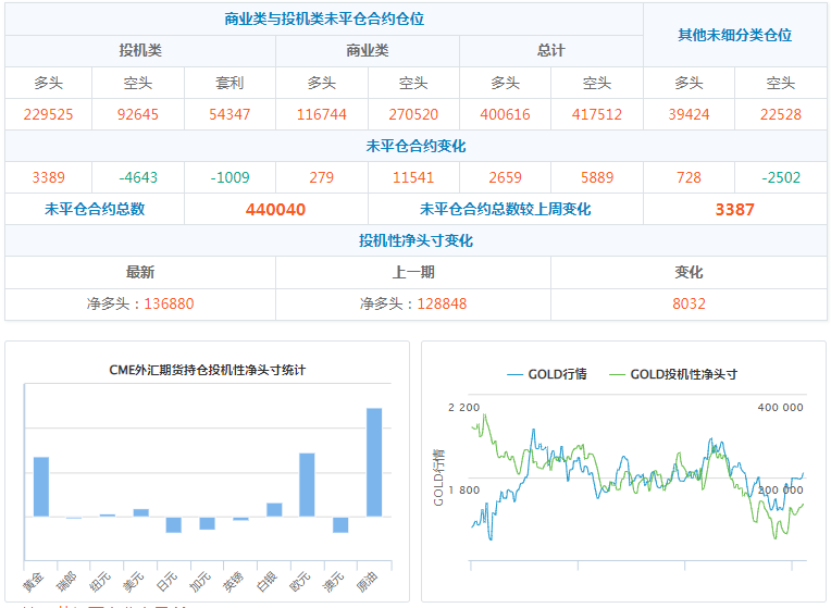 CFTC商品持仓解读:黄金净多头头寸创最近逾六个月新高