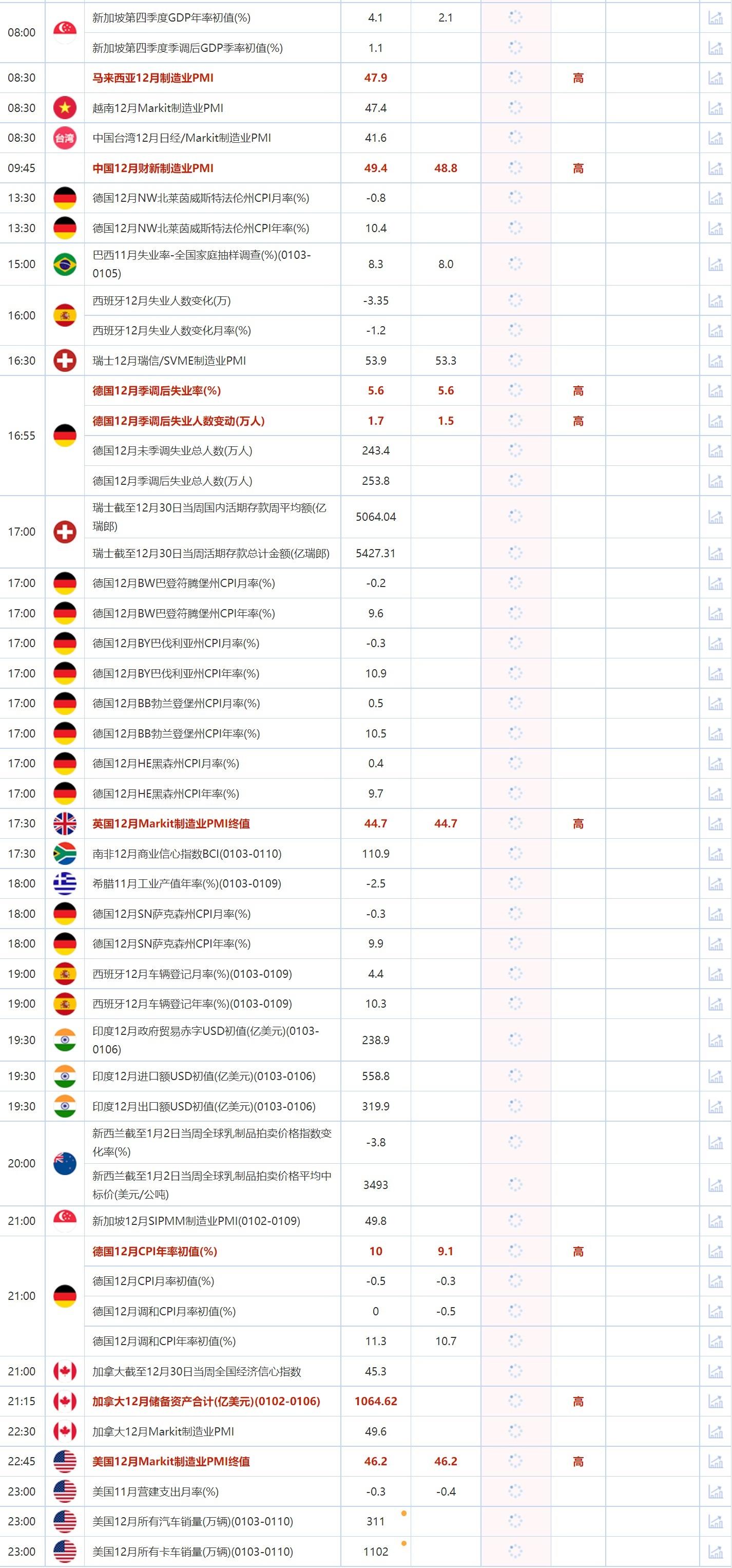 后续及时更新的财历数据请关注:【汇通网1月3日财经日历】