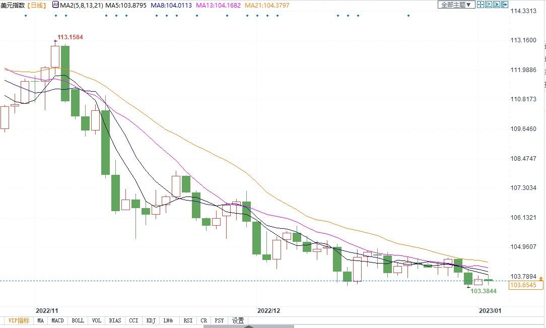 北京时间1月3日13:52,美元指数报103.64