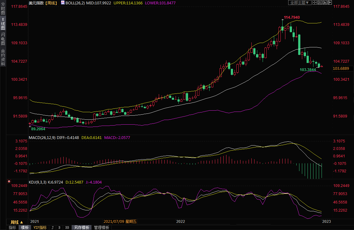 美元指数2022年年度涨幅达到8.2%,为七年来最大。但最近几周,随着投资者寻找美联储加息周期可能结束的迹象,美元已经缩减了涨幅。