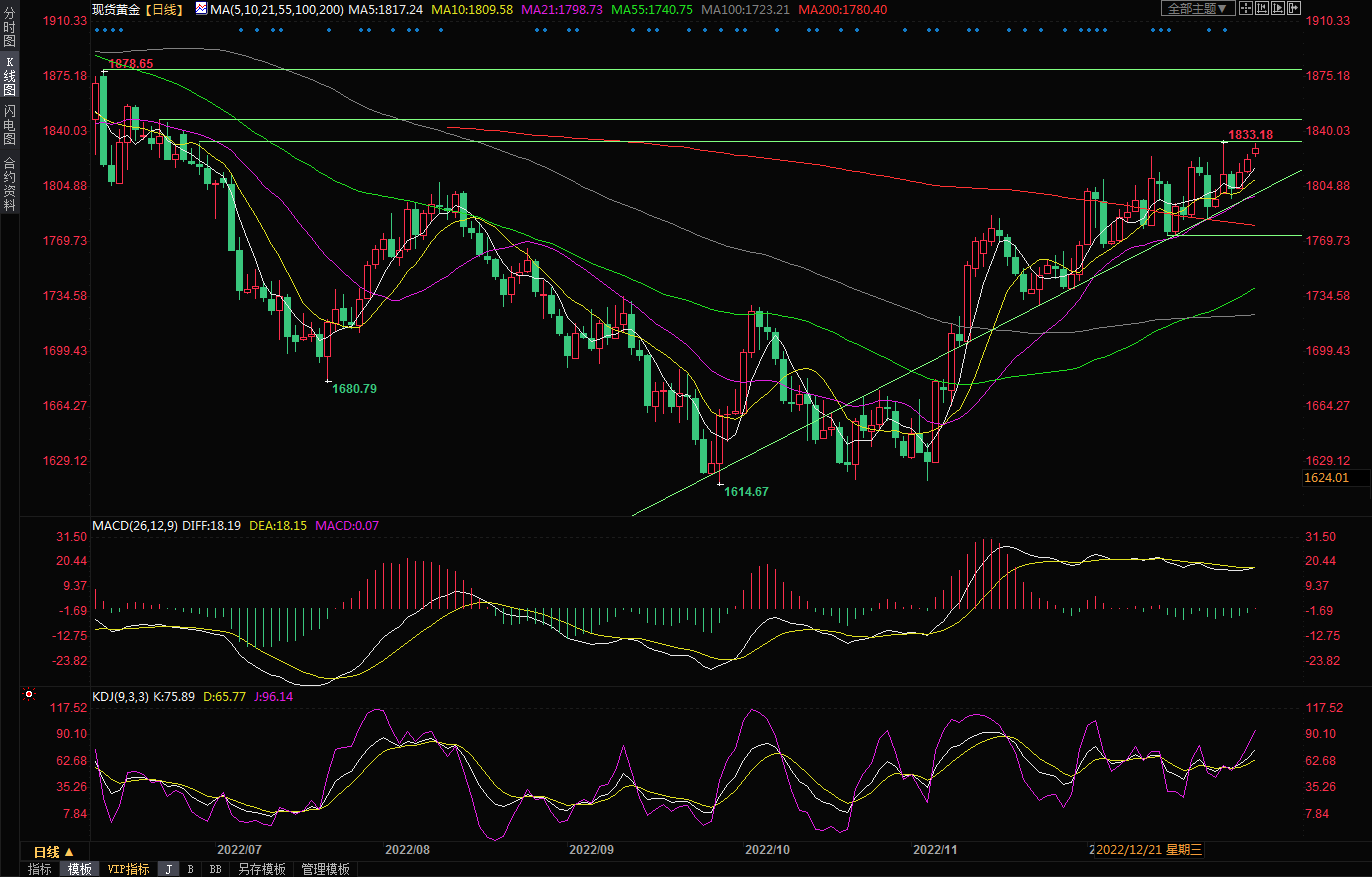 汇通财经APP讯——周二(1月3日)亚洲时段,现货黄金高开后震荡运行,最高曾触及1832.36美元/盎司附近,目前交投于1830美元/盎司附近,一方面,各大投行预计美国经济将衰退,美联储政策将在2023年逐步转向,而且技术面和基本面显示,美元仍有进一步下行风险,给金价提供支撑,另一方面,俄乌地缘局势紧张,市场普遍倾向于看涨黄金后市。