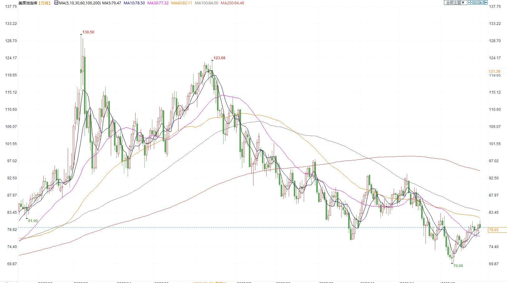 观点及建议:目前原油的运行主逻辑依旧是供应端的扰动,供应端OPEC会议并未对原油产量做出改变,国内虽然疫情政策有所调整,需求有望反弹。短期原油价格震荡运行,中期国内需求端不断恢复,我们持有谨慎看多的观点。